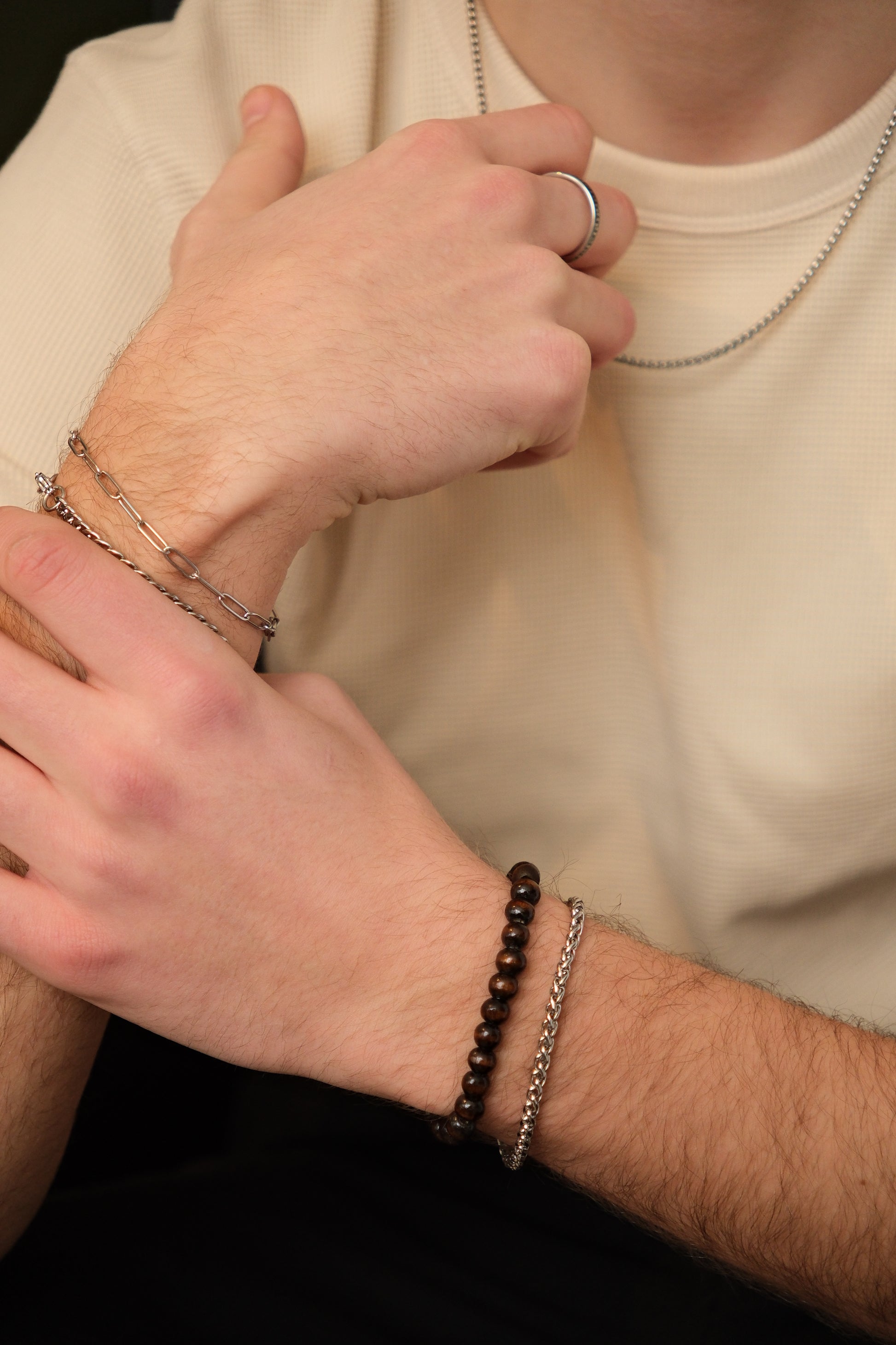 Le bracelet argent est en acier inoxydable.