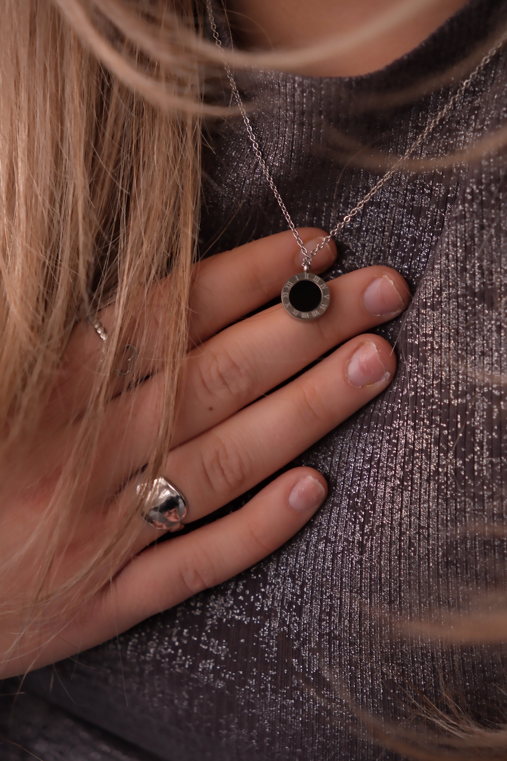 Le collier argent est en acier inoxydable.