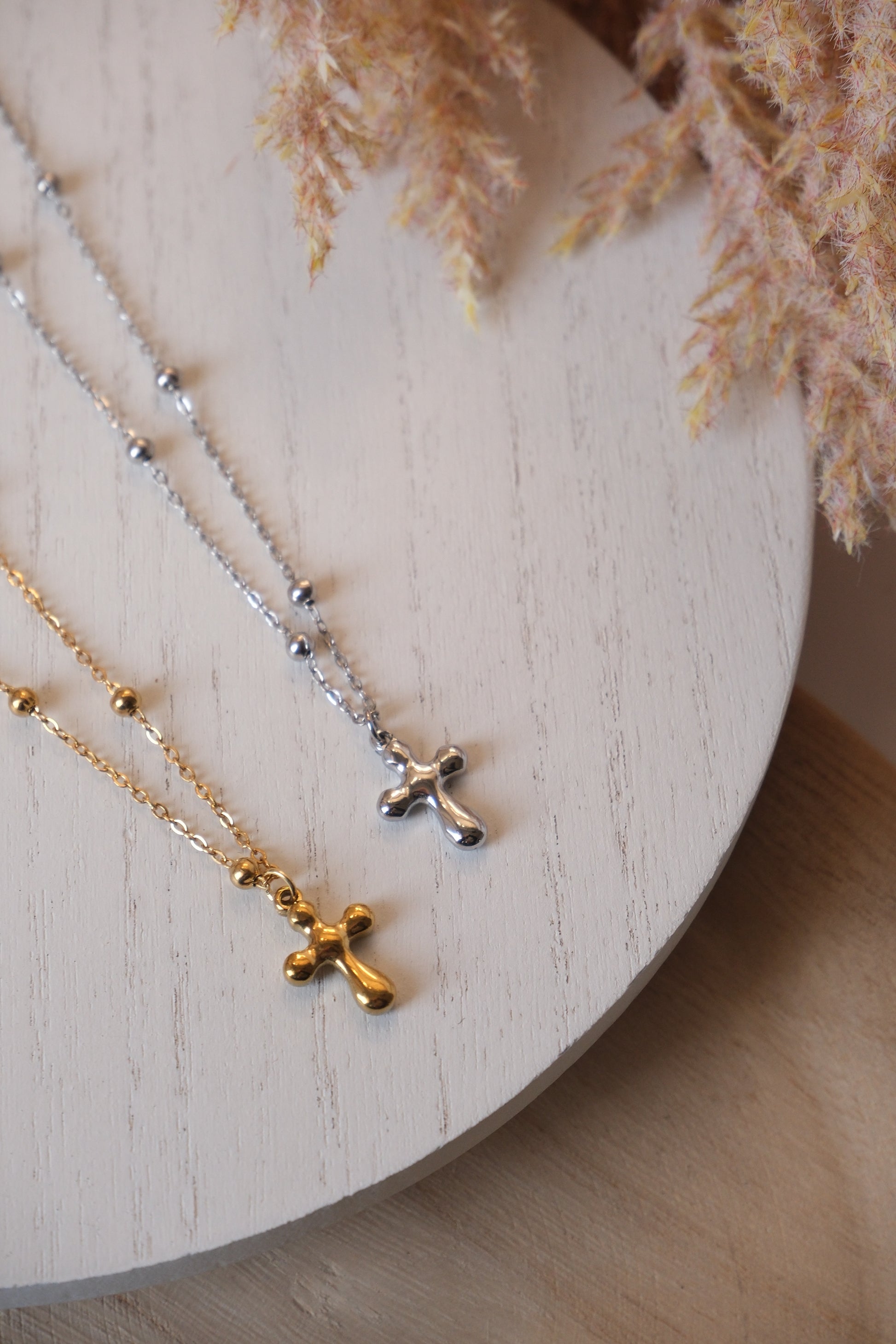 Le collier argent est en acier inoxydable.